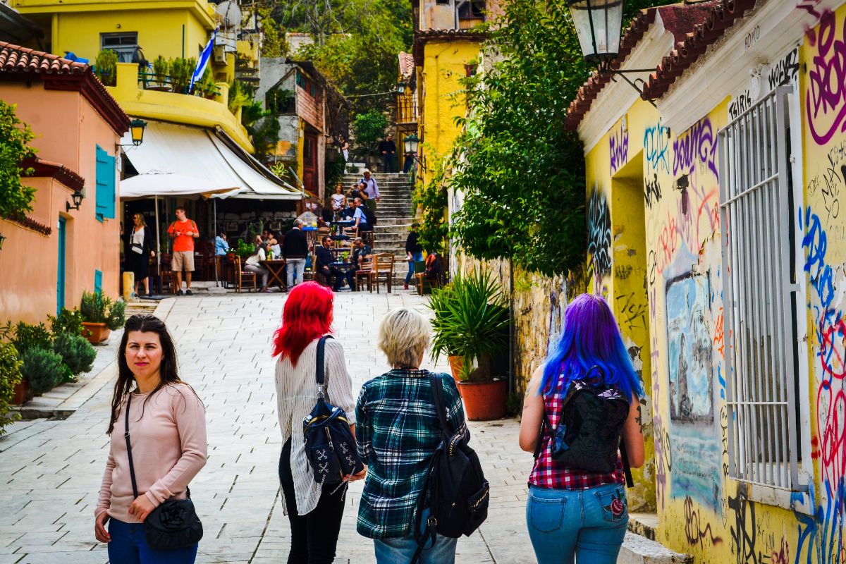 Coborâm spre piața Monastiraki, ca apoi să ajungem în zona Plaka. Zonele acestea sunt împânzite de baruri, food-street, comercianți etc. La fiecare pas ruine, monumente, turiști, culori și emoții.
