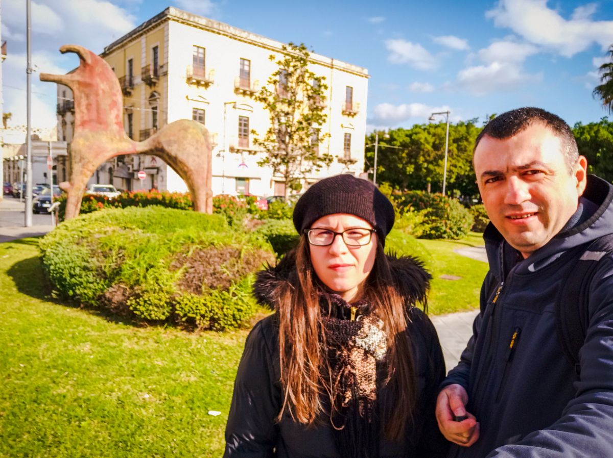 Am prins și un apus de soare superb, care ne încălzea doar sufletele, căci vântul îl simțeam până în oase. Ne-am adăpostit noi puțin cât timp am mâncat ceva tradițional într-un local, dar zilele scurte din perioada Crăciunului se sfârșesc repede și noaptea ne învăluie repede… asa ca ne ducem spre gară. A doua zi ne aștepta, până spre după amiază, colindarea Cataniei și apoi drumul spre Palermo.