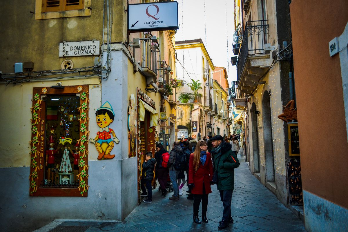 Odată ce ai trecut de porta Messina, la tot pasul sunt magazine, terase, străduțe împodobite. Atmosfera este una cu totul specială și în tot se simte spiritul italienesc, de artiști înnăscuți. Practic, zona de interes turistică constă într-o stradă principală, intre două porți, Messina și Catania, din care se ramifică străduțe. Acestea sunt împânzite de terase și magazine.