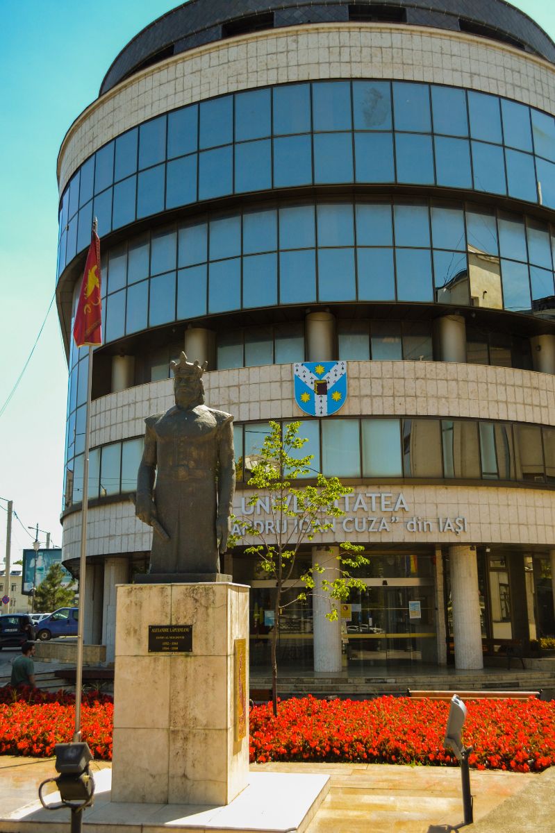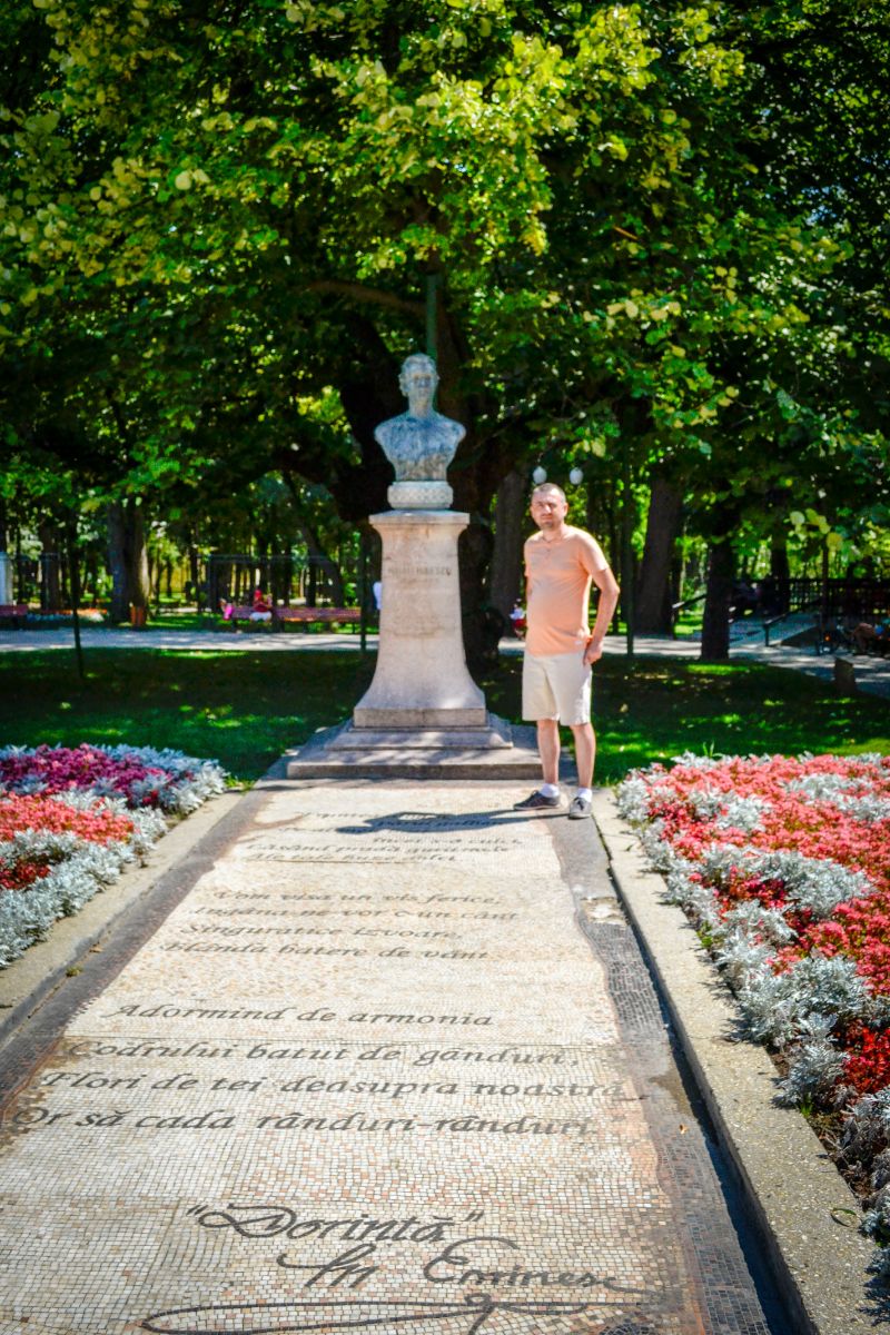 Revenim pe traseul spre Parcul Copou, trecem pe lângă Universitatea Alexandru Ioan Cuza și ajungem la Teiul lui Eminescu.
