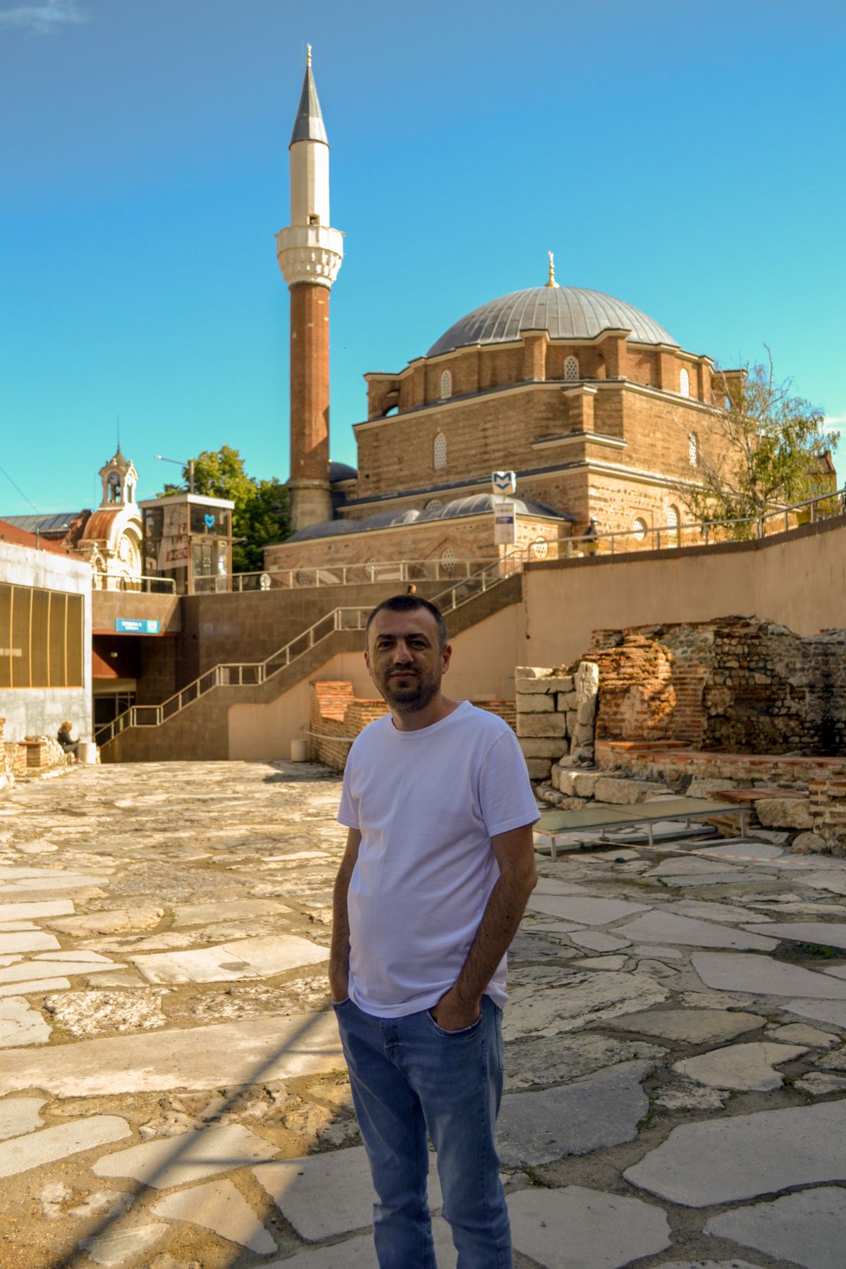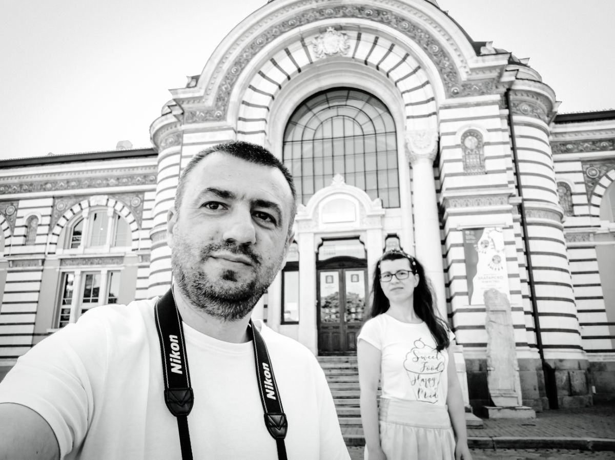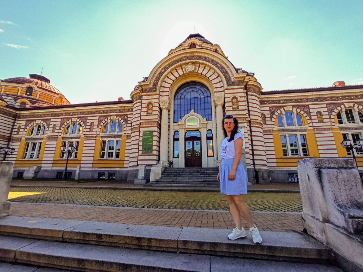 De aici încep, pentru noi, toate obiectivele Sofiei. În fața moscheii avem Piața Centrală, iar în spate Muzeul de Istorie. Ambele impresionează prin design și îmi aduce aminte că în București nu avem așa ceva…sau poate nu știu eu.