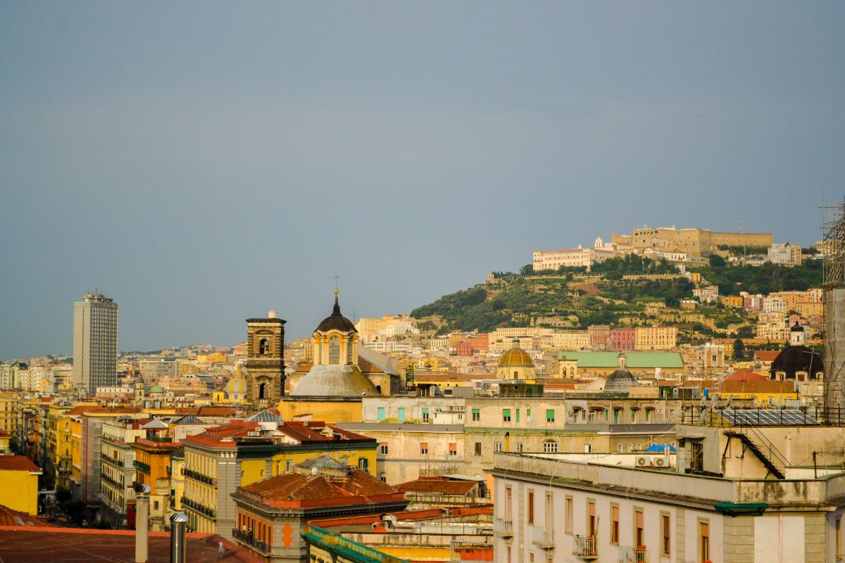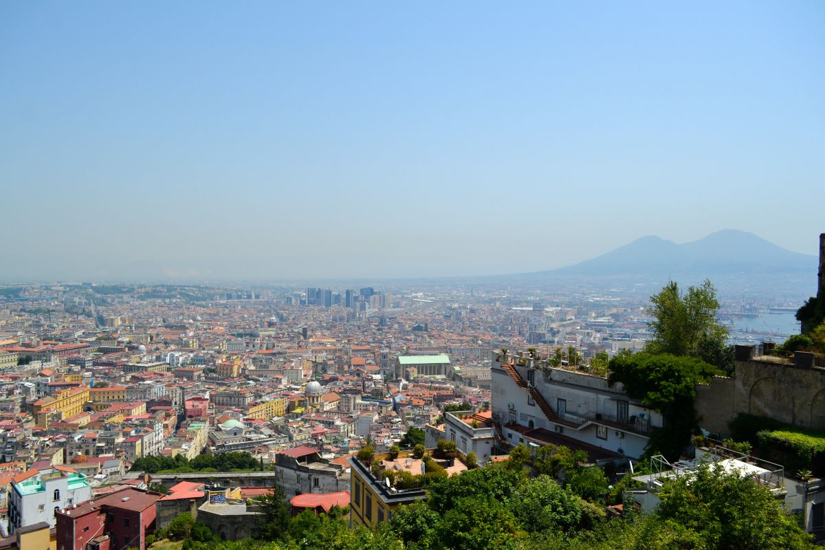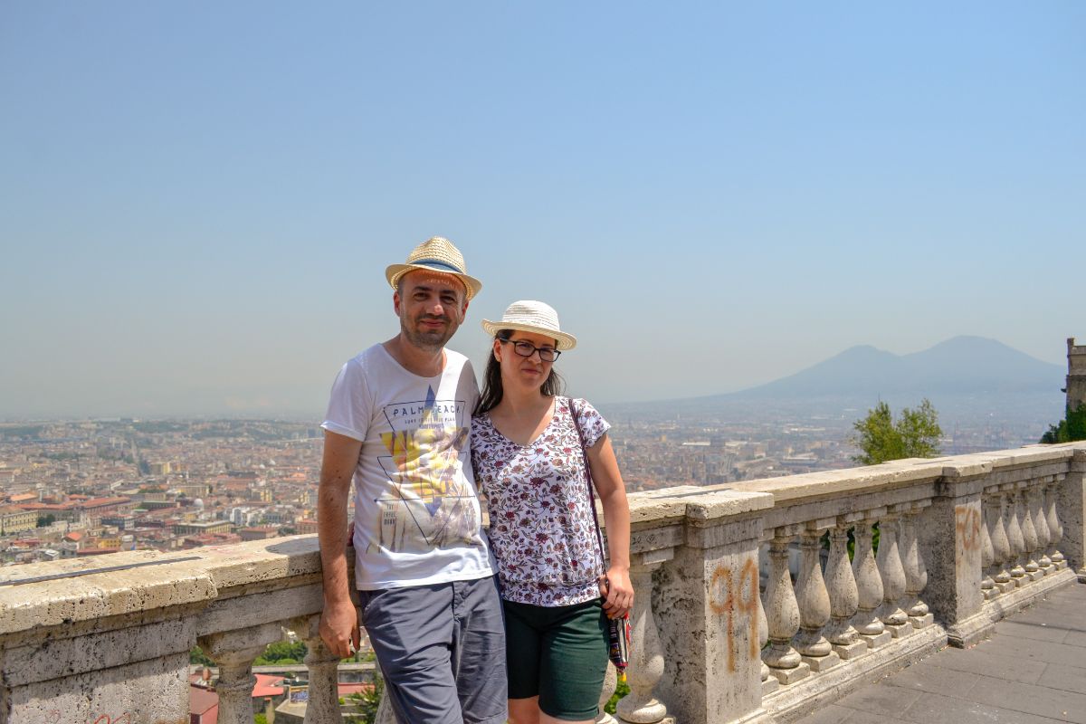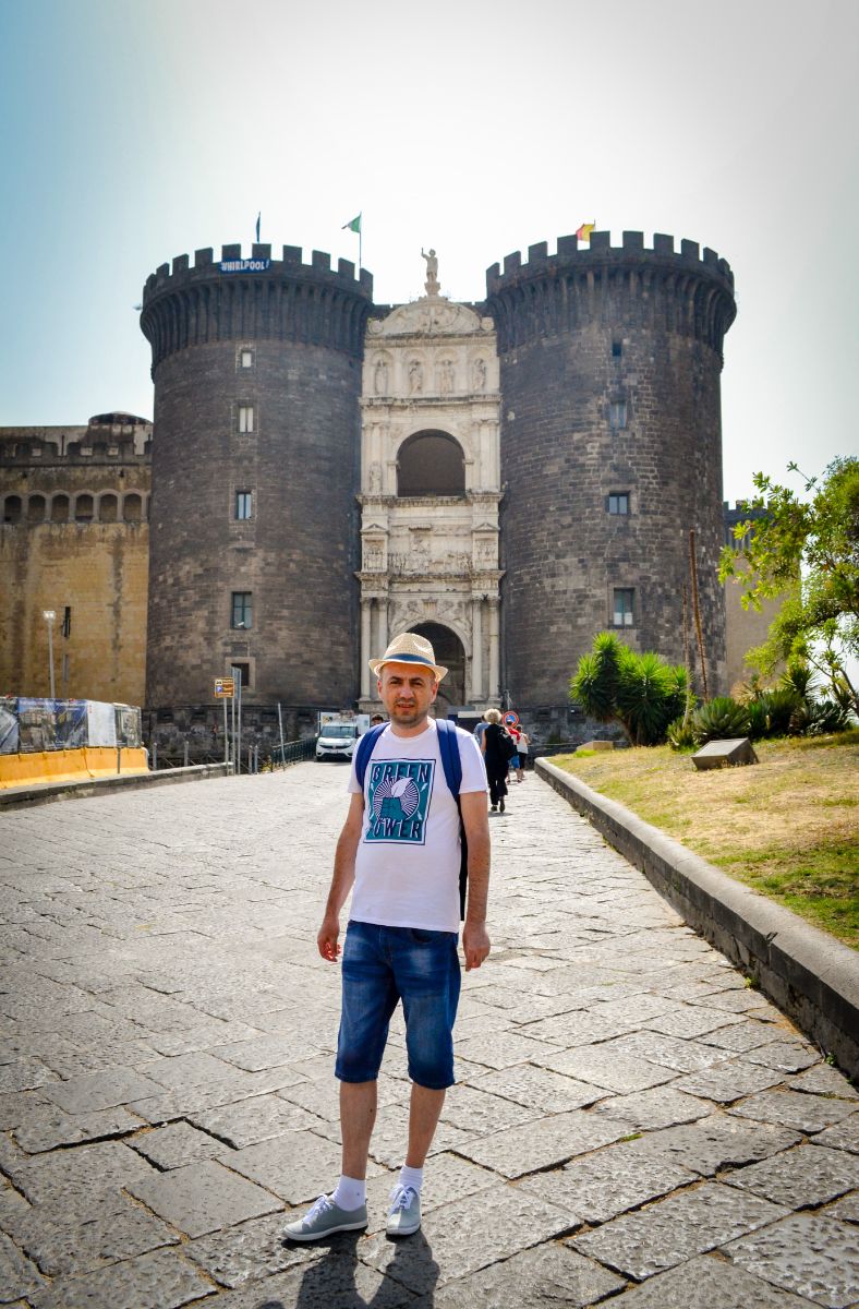 Ajungem într-un final și la castel. De aici se vede o parte mare a orașului, cu vulcanul Vezuviu în depărtare. Nu-l vizitam în interior, căldura ne răpune și ne pregătim pentru zbor… drept urmare mâncăm și ne hidratăm la un restaurant.