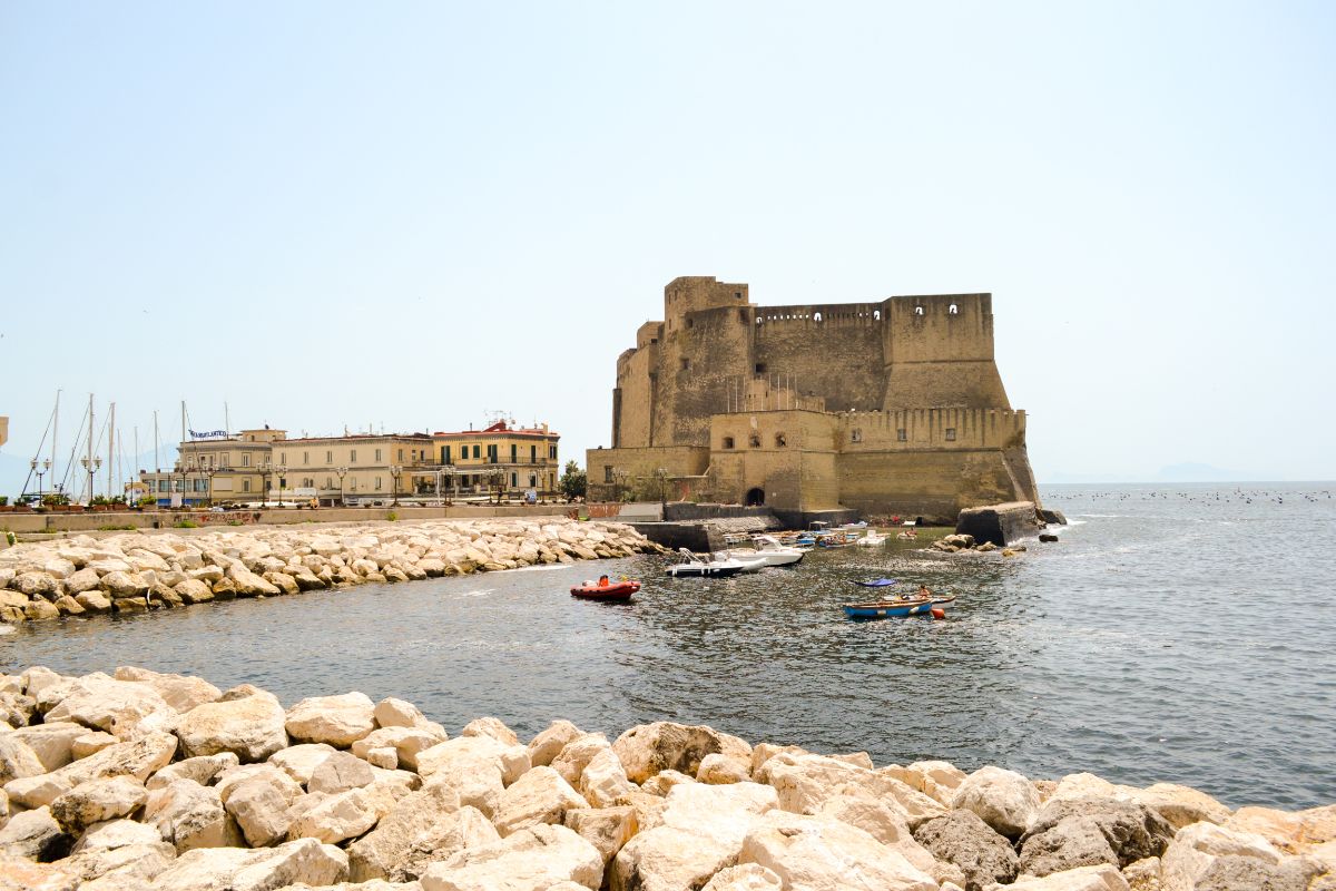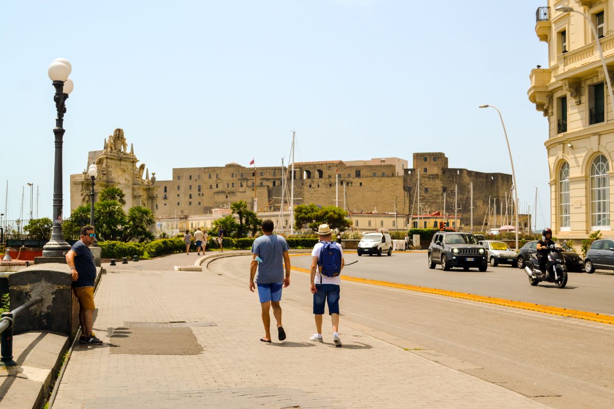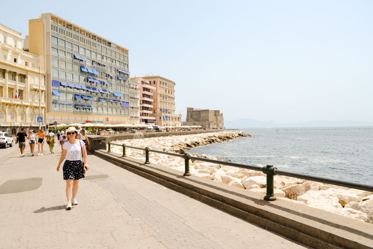 Ne continuăm traseul către Castelul Ovo, de-a lungul falezei Golfului Napoli, stradă pe care se află hoteluri renumite și care este mai curată decât media altor străzi. Un moment excelent pentru a face poze și, de ce nu, chiar o baie: