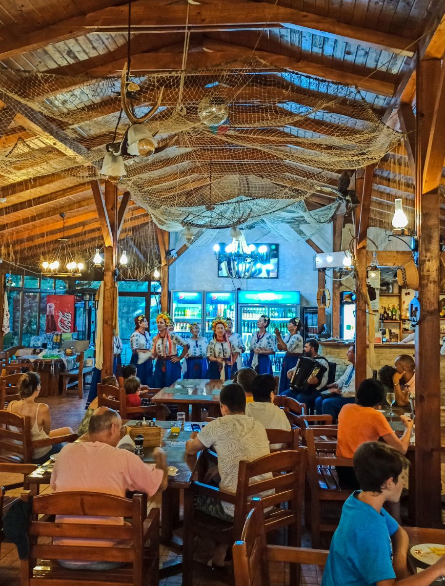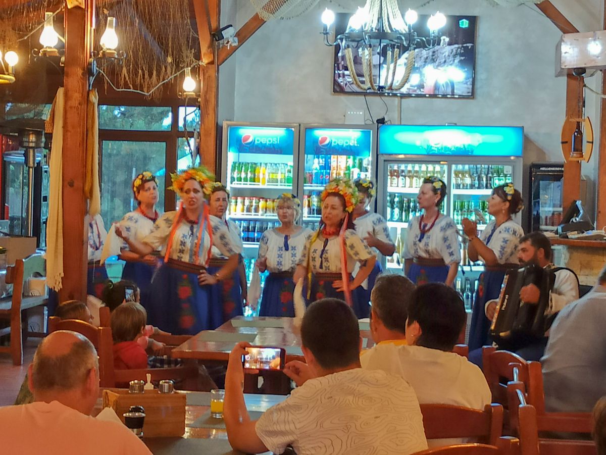 La cină, într-o zi de sâmbătă, când gradul de ocupare era la maxim, ne așteaptă o surpriză: un concert al unei trupe de uraineence.
