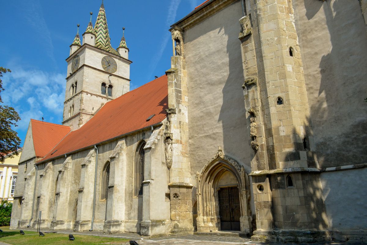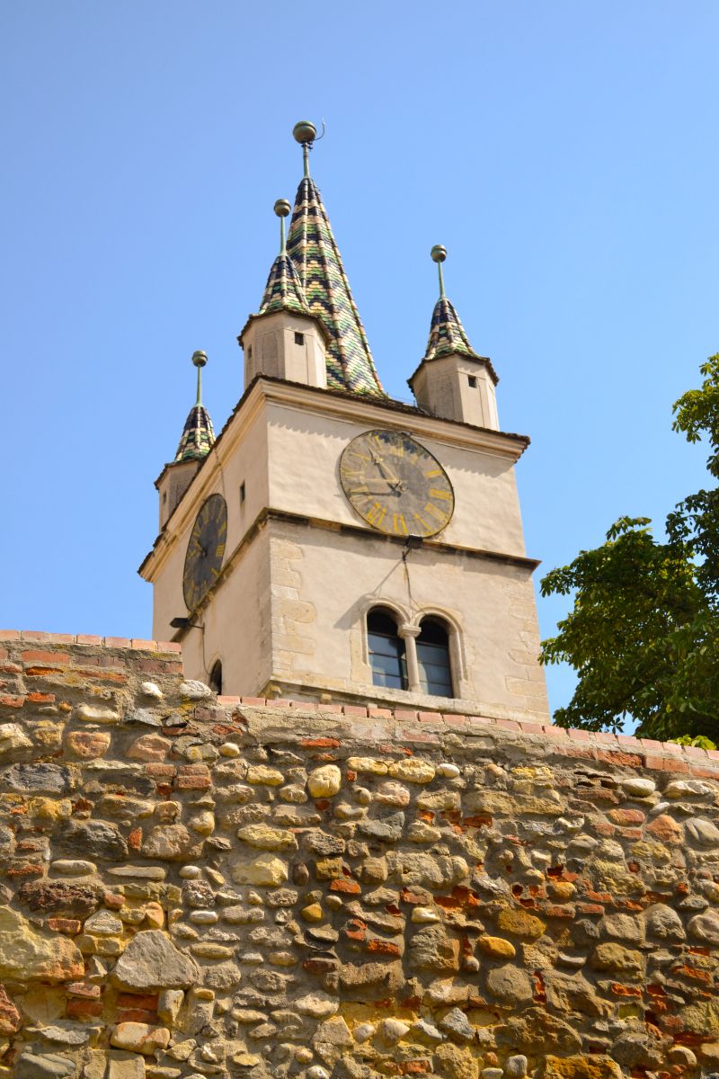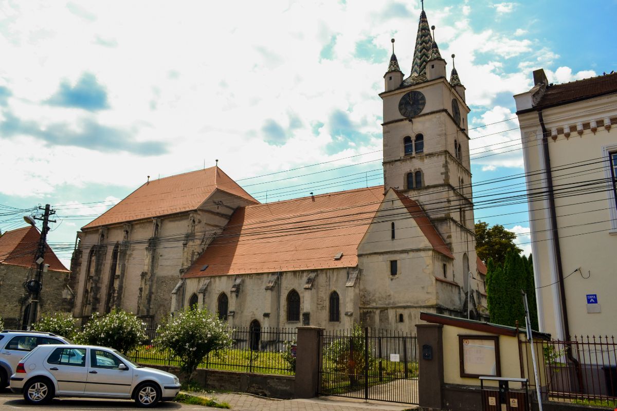 Ne lăsăm în stânga și ajungem după nici 500 metri în Parcul Primăriei și, imediat langa, la Biserica Evanghelica (fortificată). Frumoasă și impunătoare!