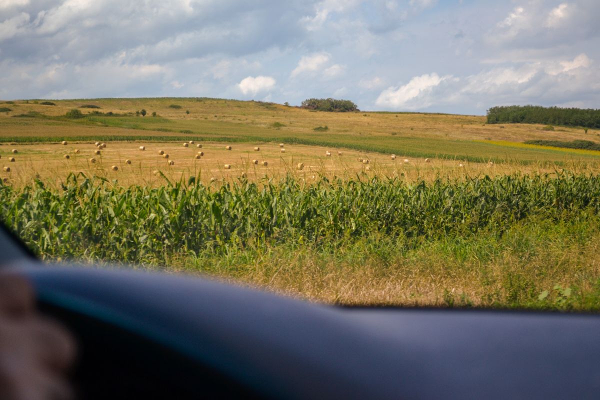 Reveniți din Deltă, plecăm peste Carpați. Nu avem o țintă bine definită, am vrea să ajungem în Maramureș, dar ne răzgândim și urcăm doar până la Jibou. Înainte de a ajunge acolo, poposim pentru a mânca și a vizita centrul orașului Sebeș, se cunoaște că suntem în altă regiune. Aici și natura se prezintă altfel iar baloții de fân sunt pregătiți pentru încărcare pe dealurile rotunde.