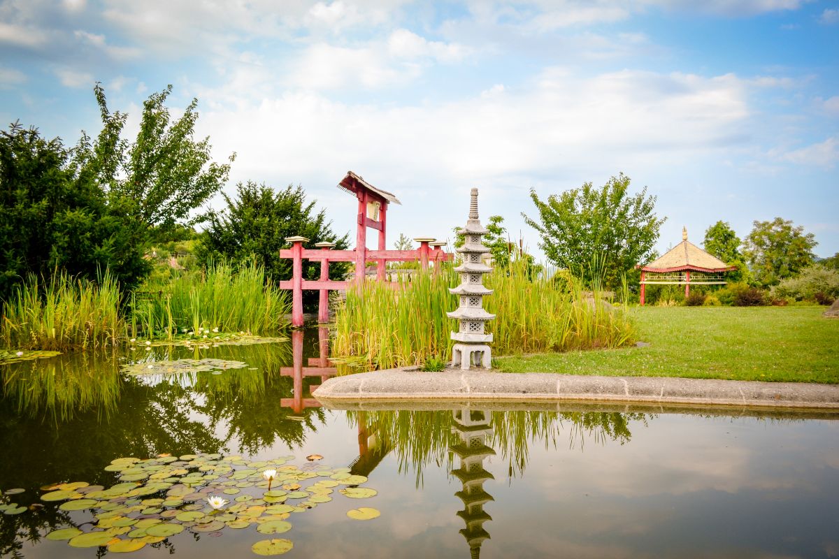 Ieșim și ne îndreptăm spre Gradina japoneză. În stânga un vulcan (nu adevărat, o machetă) și restul pozelor spun tot: