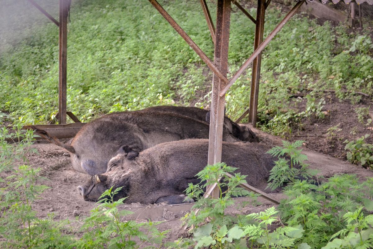 Pe lacul care trebuia să găzduiască probabil ceva animale mai exotice este doar o lebădă (probabil a fost accidentată – nu stau solitare) și dacă mai urci este un spațiu destul de mare dedicat căprioarelor si caprelor, ce au vecini doi mistreți ce dorm ca… porcii 🤭😂