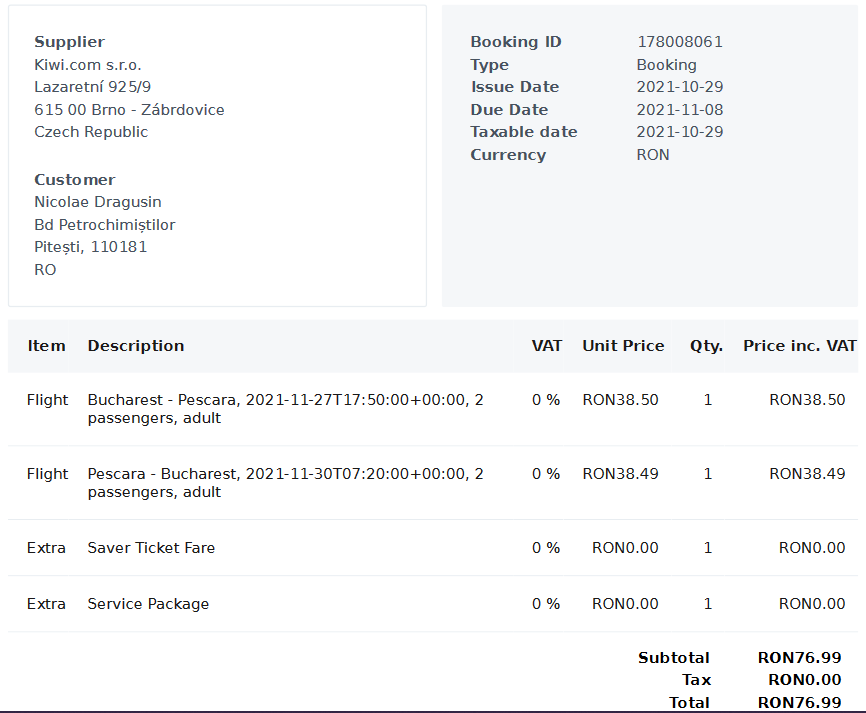 La momentul redactării acestui articol deja avem achiziționate biletele de avion pentru o altă călătorie, tot în Italia. Ineditul acesteia este că, de departe, a fost achiziționată la un preț imbatabil, de doar 8 euro în total pentru două persoane dus-întors!