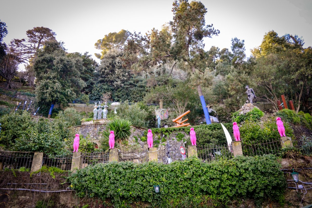 De pe malul apei se vede Musei del Parco, muzeu de sculpturi în aer liber.