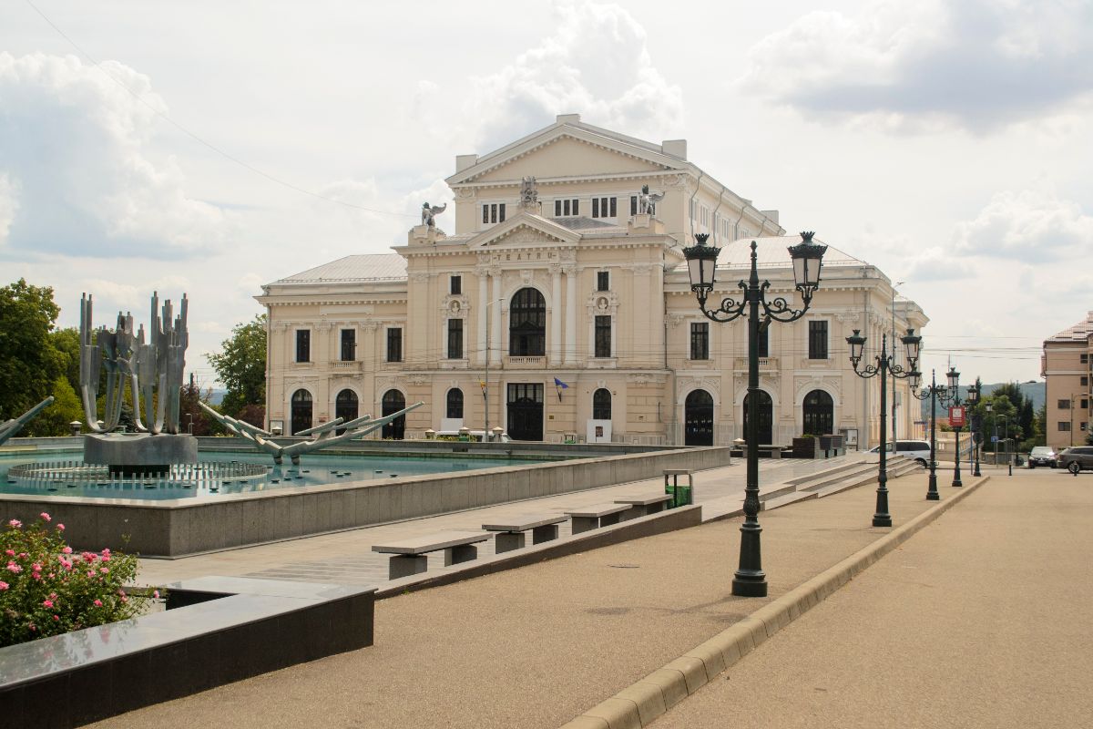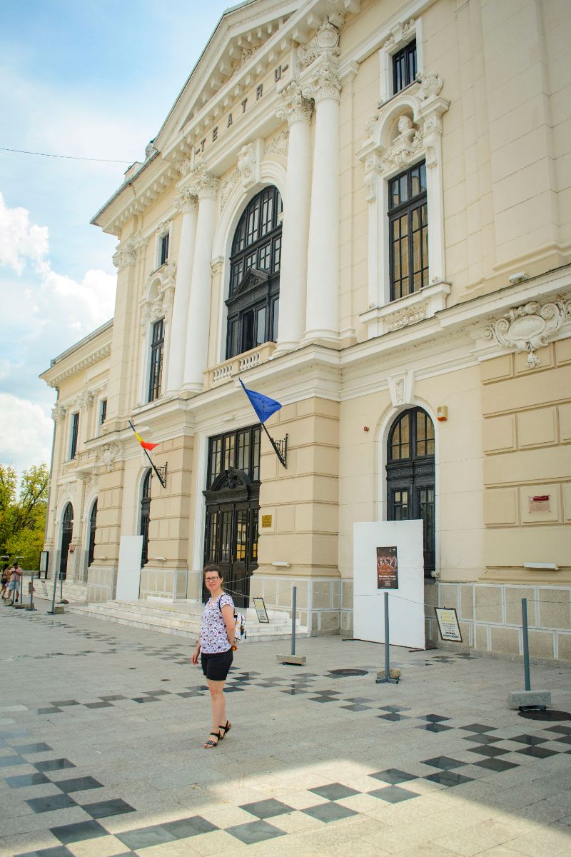 Vizavi este Palatul Culturii (Teatrul) Theodor Costescu, în ziua respectivă nu era nici un spectacol.