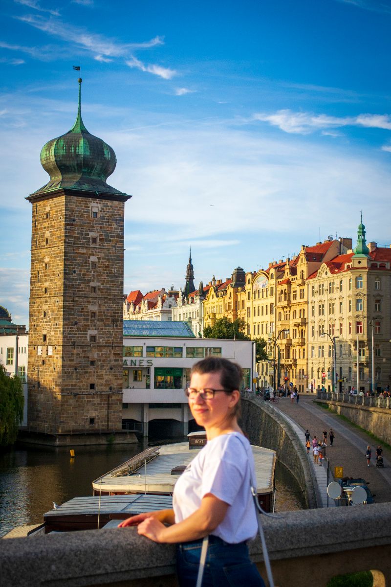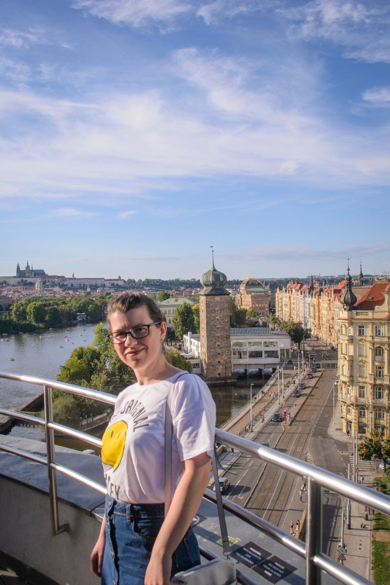 Ajunși la obiectiv, urcăm la ultimul etaj, acolo unde este un bar, pentru a avea o panoramă asupra orașului. Pentru acces, vei achiziționa o băutură sau vei plăti 100 Coroane. Ca idee, o bere costă in jur de 80 – 100 de Coroane (25 lei).