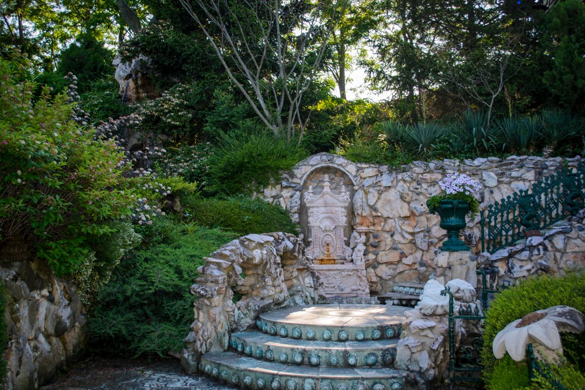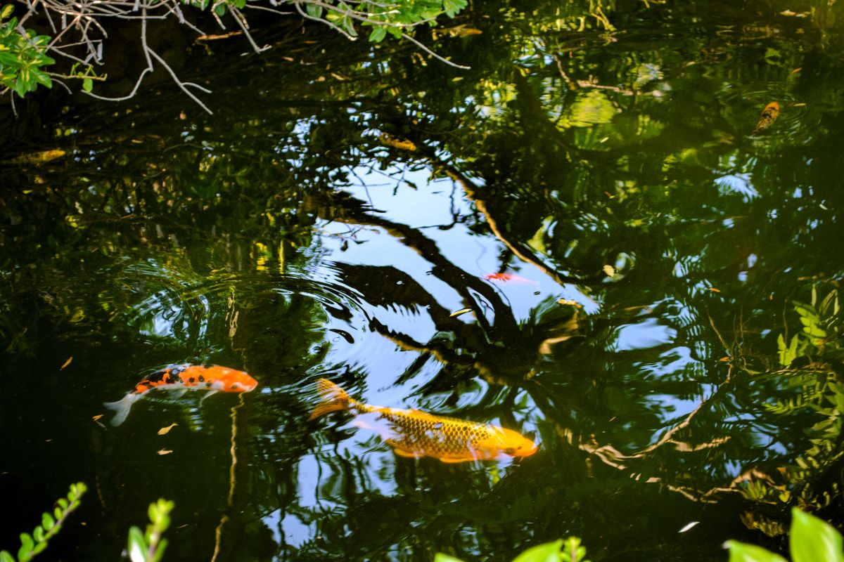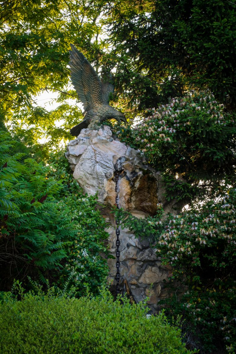 Pe lateralul castelului avem un lac mai mic cu apă curgătoare și plină cu pești, dar și o mini grădină botanică de-a dreptul superbă!