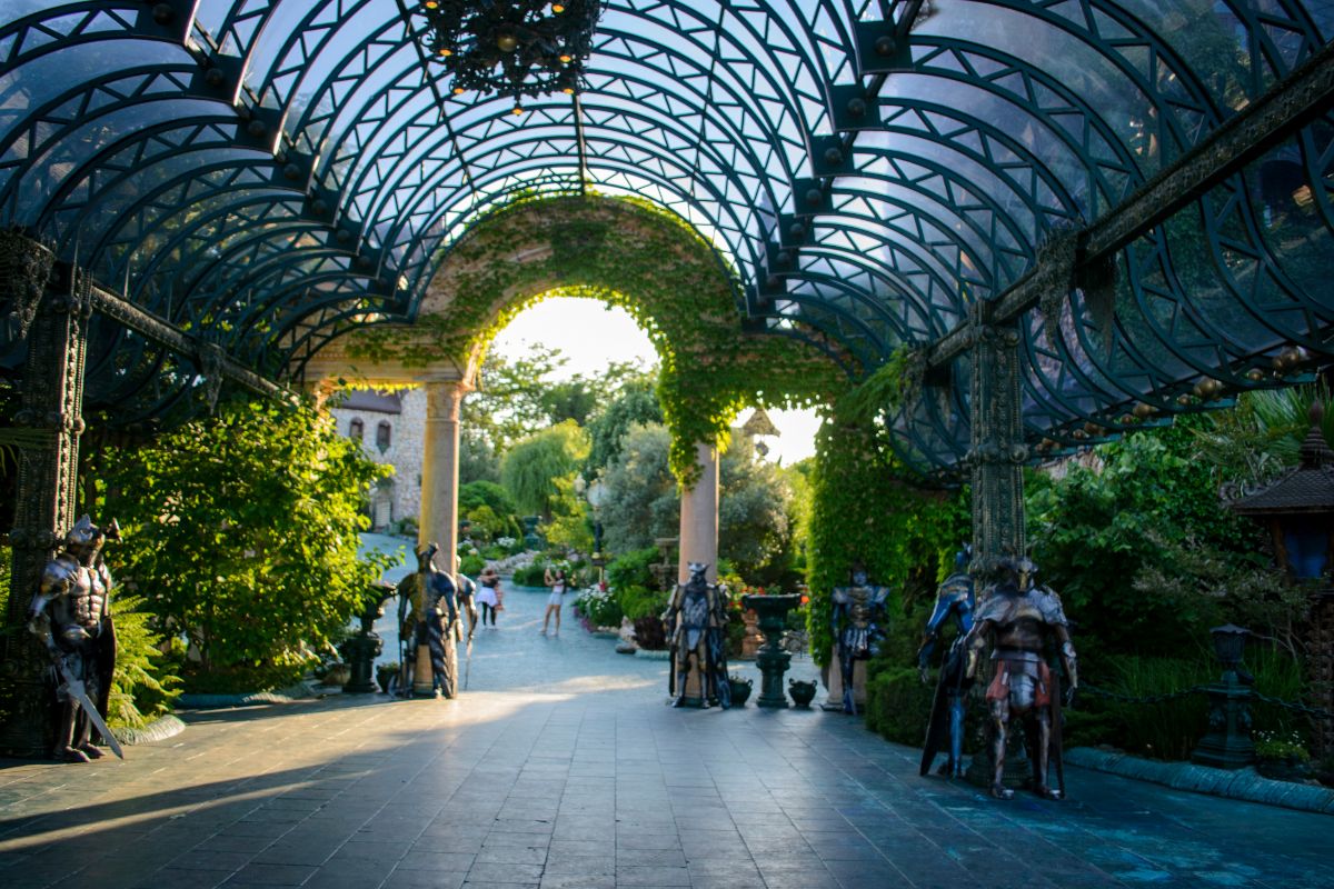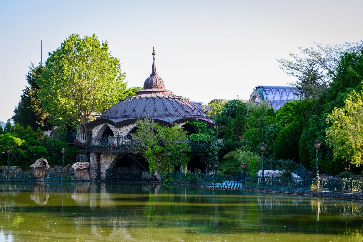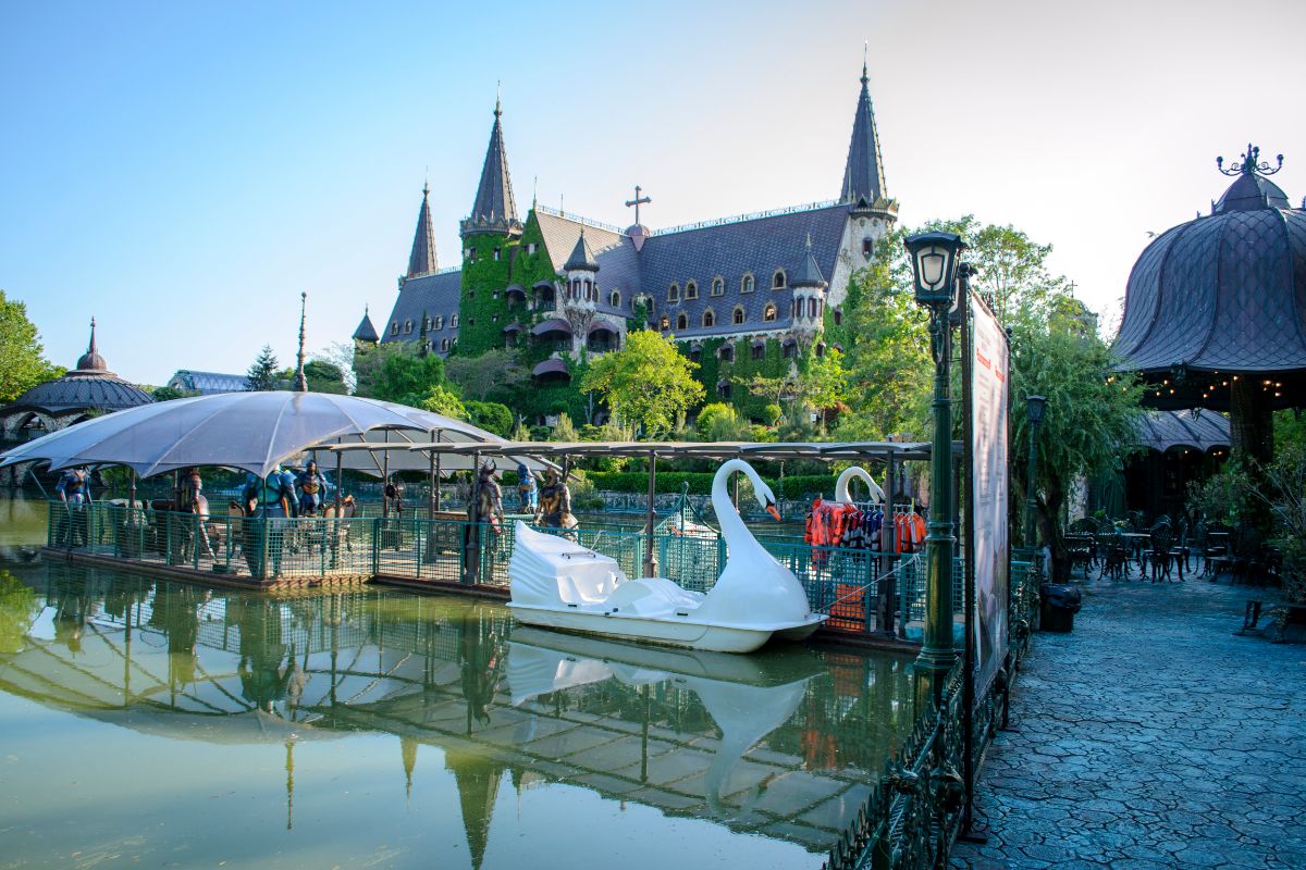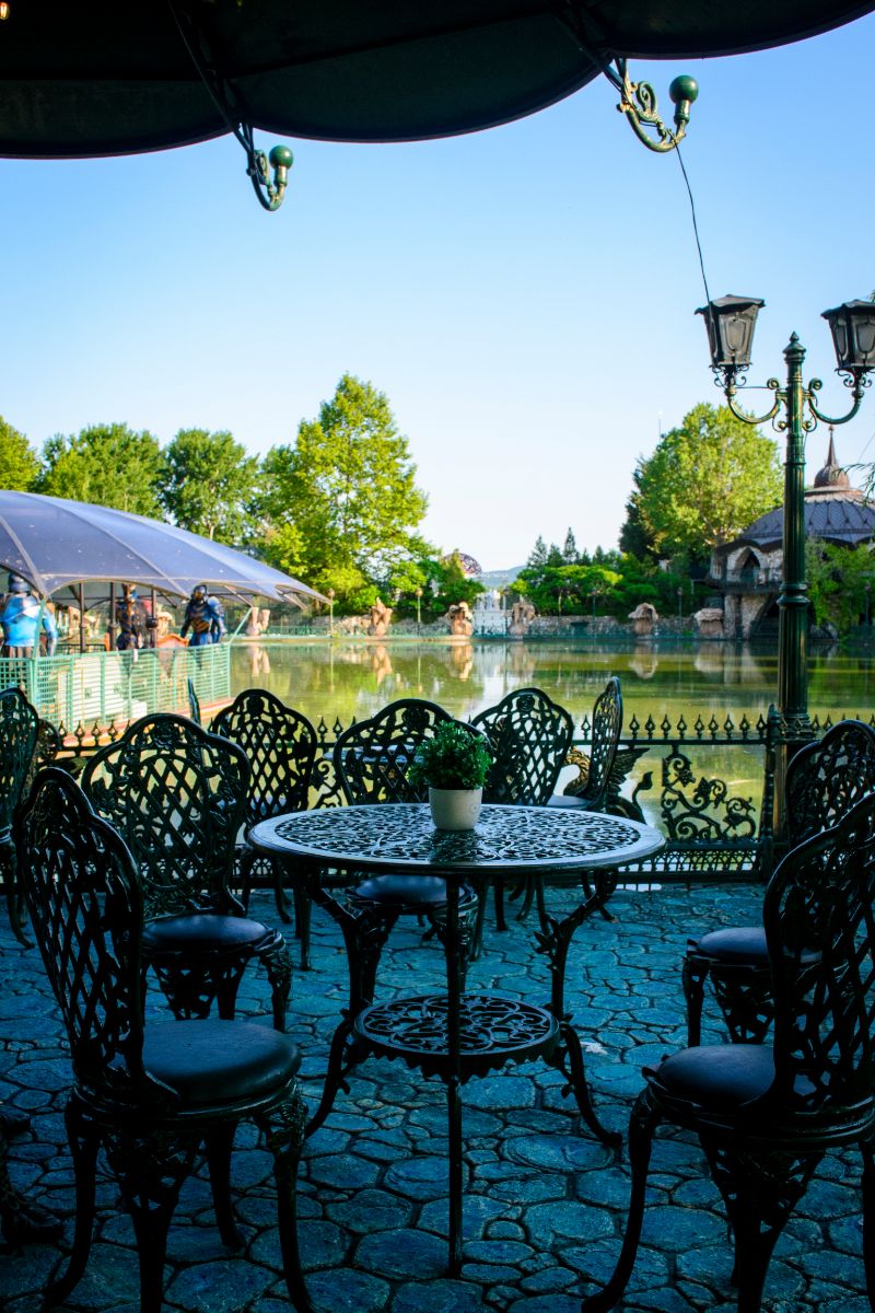 Pe lateralul castelului avem un lac mai mic cu apă curgătoare și plină cu pești, dar și o mini grădină botanică de-a dreptul superbă!